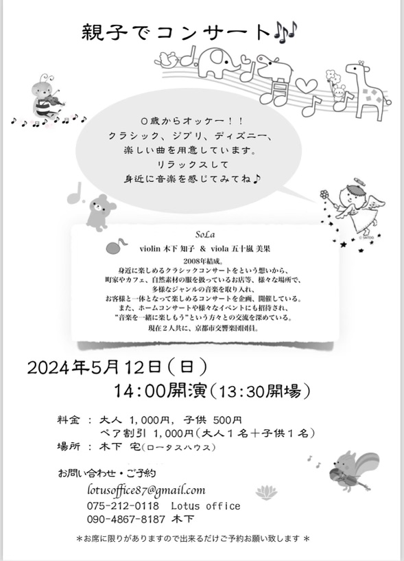 色々相談して、5/12(日)14:00~ 親子でコンサートを自宅ですることに🎶